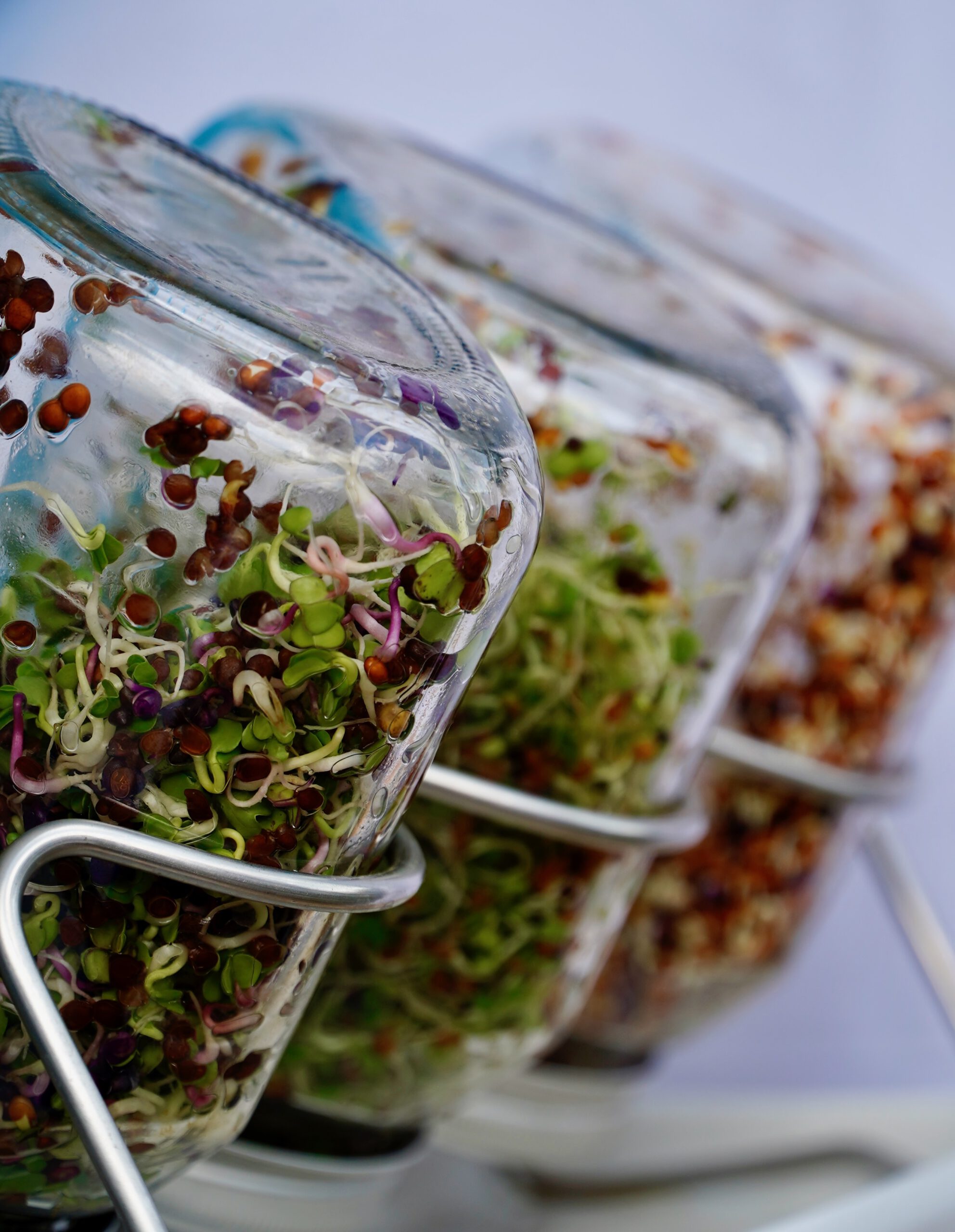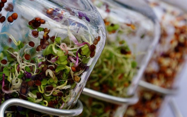 Lebensmittel aus Sprossen und gekeimtem Urgetreide.