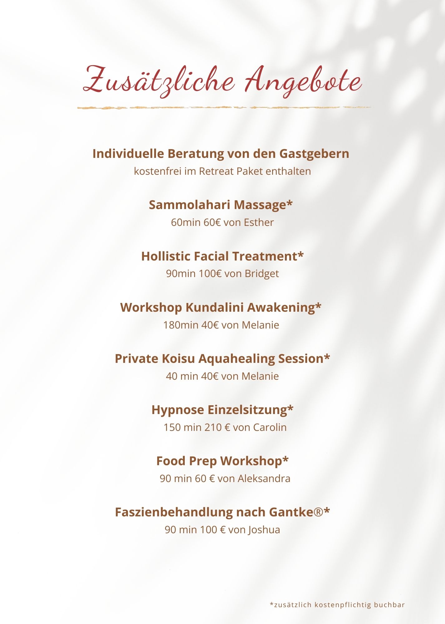 ✓ Individuelle Einzelberatung vom Retreat-Team